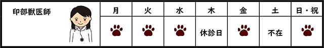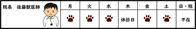 当面の間、獣医師の出勤予定を下記の通りにさせて頂きます。
